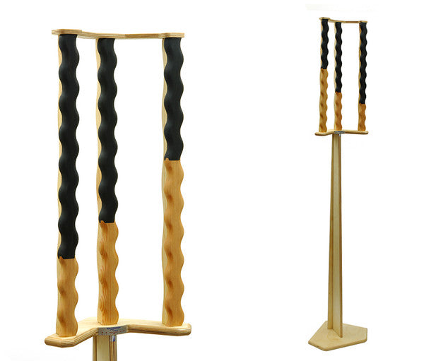 The Shakti Hallograph systemis the result of over 10 years research into speaker/room interaction and room acoustics. The Hallograph consists of two triangular shaped arrays atop wooden stands. They are placed behind each speaker near the corners of the back wall. The array is engineered with proprietary technology (patent pending) and made with exotic hardwoods, consisting of staggered activated panels that are mounted on an elegant base that beautifully blends into any style room environment. This is more than just a triangular shaped acoustic diffuser. Much more.